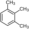 The trimethylbenzenes constitute a group of substances of aromatic hydrocarbons, which structure consists of a benzene ring with three methyl groups (–CH3) as a substituent.[1][2] Through their different arrangement, they form three structural isomers with the molecular formula C9H12. They also belong to the group of C3-benzenes. The best-known isomer is mesitylene.[3]