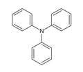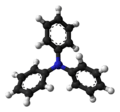 Triphenylamine is an organic compound with formula (C6H5)3N. In contrast to most amines, triphenylamine is nonbasic. At room temperature it appears as a colorless crystalline solid, with monoclinic structure. It is well miscible in diethyl ether and benzene, but it is practically insoluble in water, and partially in ethanol. Its derivatives have useful properties in electrical conductivity and electroluminescence, and they are used in OLEDs as hole-transporters.[2]