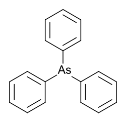 Triphenylarsine is the chemical compound with the formula As(C6H5)3. This organoarsenic compound, often abbreviated AsPh3, is a colorless crystalline solid that is used as a ligand and a reagent in coordination chemistry and organic synthesis. The molecule is pyramidal with As-C distances of 1.942–1.956 Å and C-As-C angles of 99.6–100.5°.[1]
