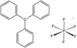 Triphenylmethyl hexafluorophosphate (also triphenylcarbenium hexafluorophosphate, trityl hexafluorophosphate, or tritylium hexafluorophosphate) is an organic salt with the formula [(C6H5)3C]+[PF6]−, consisting of the triphenylcarbenium cation [(C6H5)3C]+ and the hexafluorophosphate anion [PF6]−.[1]