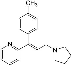 • InChI=1S/C19H22N2/c1-16-7-9-17(10-8-16)18(19-6-2-3-12-20-19)11-15-21-13-4-5-14-21/h2-3,6-12H,4-5,13-15H2,1H3/b18-11+ checkY