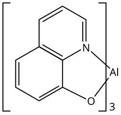 Tris(8-hydroxyquinolinato)aluminium is the chemical compound with the formula Al(C9H6NO)3. Widely abbreviated Alq3, it is a coordination complex wherein aluminium is bonded in a bidentate manner to the conjugate base of three 8-hydroxyquinoline ligands.