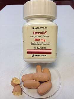 - ^ Cohen JS (June 2006). "Risks of troglitazone apparent before approval in USA". Diabetologia. 49 (6): 1454–1455. doi:10.1007/s00125-006-0245-0. PMID 16601971.