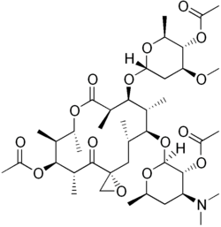 Troleandomycin (TAO for short[1]) is a macrolide antibiotic. It was sold in Italy (branded Triocetin) and Turkey (branded Tekmisin). It is no longer sold in Italy as of 2018.