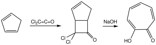 - ^ Liu N, Song W, Schienebeck CM, Zhang M, Tang W (December 2014). "Synthesis of naturally occurring tropones and tropolones". Tetrahedron. 70 (49): 9281–9305. doi:10.1016/j.tet.2014.07.065. PMC 4228802. PMID 25400298.