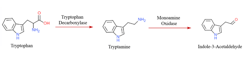 Monoamine oxidases A and B are the primary enzymes involved in tryptamine metabolism to produce indole-3-acetaldehyde, however it is unclear which isoform is specific to tryptamine degradation.[24]