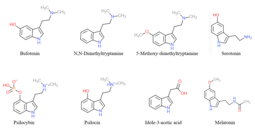 - ^ Chen X, Li J, Yu L, Maule F, Chang L, Gallant JA, et al. (October 2023). "A cane toad (Rhinella marina) N-methyltransferase converts primary indolethylamines to tertiary psychedelic amines". The Journal of Biological Chemistry. 299 (10) 105231. doi:10.1016/j.jbc.2023.105231. PMC 10570959. PMID 37690691.