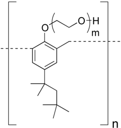 Tyloxapol is a nonionic liquid polymer of the alkyl aryl polyether alcohol type. It is used as a surfactant to aid liquefaction and removal of mucopurulent (containing mucus and pus) bronchopulmonary secretions,[1][2] administered by inhalation through a nebulizer[3] or with a stream of oxygen.