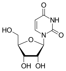 Uracil's use in the body is to help carry out the synthesis of many enzymes necessary for cell function through bonding with riboses and phosphates.[2] Uracil serves as allosteric regulator and coenzyme for reactions in animals and in plants.[22] UMP controls the activity of carbamoyl phosphate synthetase and aspartate transcarbamoylase in plants, while UDP and UTP regulate CPSase II activity in animals. UDP-glucose regulates the conversion of glucose to galactose in the liver and other tissues in the process of carbohydrate metabolism.[22] Uracil is also involved in the biosynthesis of polysaccharides and the transportation of sugars containing aldehydes.[22] Uracil is important for the detoxification of many carcinogens, for instance those found in tobacco smoke.[23] Uracil is also required to detoxify many drugs such as cannabinoids (THC)[24] and morphine (opioids).[25] It can also slightly increase the risk for cancer in unusual cases in which the body is extremely deficient in folate.[26] The deficiency in folate leads to increased ratio of deoxyuridine monophosphates (dUMP)/deoxythymidine monophosphates (dTMP) and uracil misincorporation into DNA and eventually low production of DNA.[26]