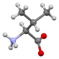 Valine, like other branched-chain amino acids, is synthesized by bacteria and plants, but not by animals.[9] It is therefore an essential amino acid in animals, and needs to be present in the diet. Adult humans require about 24 mg/kg body weight daily.[10] It is synthesized in plants and bacteria via several steps starting from pyruvic acid. The initial part of the pathway also leads to leucine. The intermediate α-ketoisovalerate undergoes reductive amination with glutamate. Enzymes involved in this biosynthesis include:[11]
