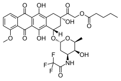 Valrubicin (N-trifluoroacetyladriamycin-14-valerate, trade name Valstar) is a chemotherapy drug used to treat bladder cancer.[1] Valrubicin is a semisynthetic analog of the anthracycline doxorubicin, and is administered by infusion directly into the bladder.