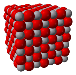 Vanadium(II) oxide is the inorganic compound with the idealized formula VO. It is one of the several binary vanadium oxides. It adopts a distorted NaCl structure and contains weak V−V metal to metal bonds. VO is a semiconductor owing to delocalisation of electrons in the t2g orbitals. VO is a non-stoichiometric compound, its composition varying from VO0.8 to VO1.3.[3]
