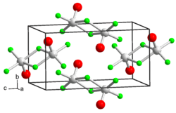 Vanadium(V) oxytrifluoride is a chemical compound with the formula VOF3. It is one of several vanadium(V) oxyhalides. VOF3 is a yellowish orange powder that is sensitive to moisture.[2] Characteristic of early metal fluorides, the structure is polymeric in the solid state. The solid adopts a layered structure but upon evaporation, the species becomes dimeric. In contrast VOCl3 and VOBr3 remain tetrahedral in all states, being volatile liquids at room temperature.[3]