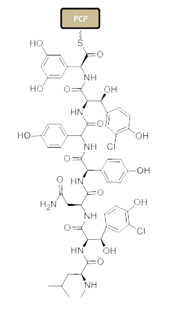 - ^ Schmartz PC, Zerbe K, Abou-Hadeed K, Robinson JA (August 2014). "Bis-chlorination of a hexapeptide-PCP conjugate by the halogenase involved in vancomycin biosynthesis" (PDF). Organic & Biomolecular Chemistry. 12 (30): 5574–7. doi:10.1039/C4OB00474D. PMID 24756572. Archived (PDF) from the original on 2 February 2024. Retrieved 2 February 2024.