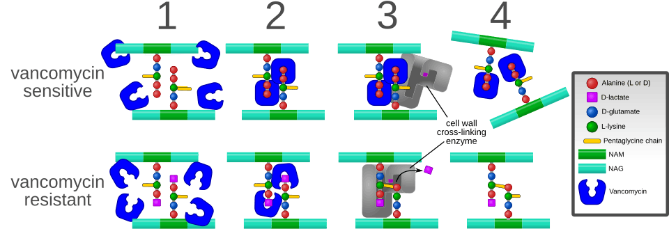 - ^ Pootoolal J, Neu J, Wright GD (2002). "Glycopeptide antibiotic resistance". Annual Review of Pharmacology and Toxicology. 42: 381–408. doi:10.1146/annurev.pharmtox.42.091601.142813. PMID 11807177.