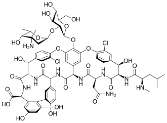 - ^ Okano A, Isley NA, Boger DL (June 2017). "Peripheral modifications of [Ψ[CH2NH]Tpg4]vancomycin with added synergistic mechanisms of action provide durable and potent antibiotics". Proceedings of the National Academy of Sciences of the United States of America. 114 (26): E5052–E5061. Bibcode:2017PNAS..114E5052O. doi:10.1073/pnas.1704125114. PMC 5495262. PMID 28559345.