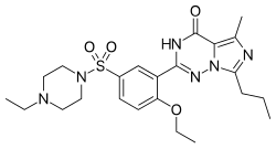 Vardenafil, sold under the brand name Levitra among others, is a medication that is used for treating erectile dysfunction.[1][2] It is a PDE5 inhibitor.[1] It is taken by mouth.[1]