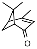Verbenone is a monoterpene, to be specific a bicyclic ketone terpene. It is the primary constituent of the oil of Spanish verbena, hence its name; it is also found in the oil of rosemary. It is nearly insoluble in water, but miscible with most organic solvents.[1]