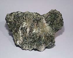 Vermiculite is a hydrous phyllosilicate mineral which undergoes significant expansion when heated. Exfoliation occurs when the mineral is heated sufficiently; commercial furnaces can routinely produce this effect. Vermiculite forms by the weathering or hydrothermal alteration of biotite or phlogopite.[3] Large commercial vermiculite mines exist in the United States, Russia, South Africa, China, and Brazil.