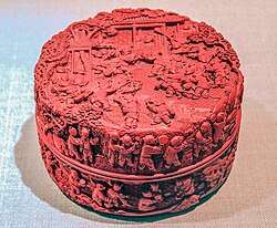 In China, the color vermilion played an important role in national culture. The color was mostly used in creating Chinese lacquerware, which was exported around the world, giving rise to the term "Chinese red".