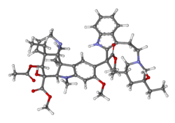 - ^ Keglevich P, Hazai L, Kalaus G, Szántay C (May 2012). "Modifications on the basic skeletons of vinblastine and vincristine". Molecules. 17 (5): 5893–5914. doi:10.3390/molecules17055893. PMC 6268133. PMID 22609781.