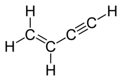Vinylacetylene is the organic compound with the formula C4H4 or H2C=CH−C≡CH. The colourless gas was once used in the polymer industry. It is composed of both alkyne and alkene groups and is the simplest enyne.