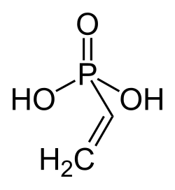 Vinylphosphonic acid is an organophosphorus compound with the formula C2H3PO3H2.[2] It is a colorless, low-melting solid, although commercial samples are often yellowish viscous liquids. It is used to prepare adhesives. As in other phosphonic acids, the phosphorus center is tetrahedral, being bonded to an organic group (vinyl in this case), two OH groups, and an oxygen.