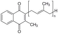 The number n of isoprenyl units in their side chain differs and ranges from 4 to 13, hence vitamin K2 consists of various forms.[2] It is indicated as a suffix (-n), e. g. MK-7 or MK-9.
