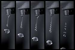 A drop of water falling toward water in a glass