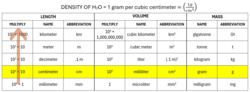 • 0.99997495(84) g/mL at 3.983035(670) °C (temperature of maximum density, often 4 °C)[5]