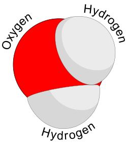 Space filling model of a water molecule