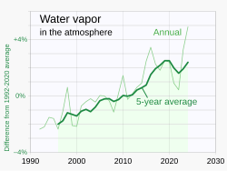 - ^ Gulev SK, Thorne PW, Ahn J, Dentener FJ, Domingues CM, Gerland S, Gong G, Kaufman DS, Nnamchi HC, Quaas J, Rivera JA, Sathyendranath S, Smith SL, Trewin B, von Shuckmann K, Vose RS (2021). "2.3.1.3.3 Total column water vapour". In Masson-Delmotte V, Zhai P (eds.). Changing State of the Climate System. Climate Change 2021: The Physical Science Basis. Contribution of Working Group I to the Sixth Assessment Report of the Intergovernmental Panel on Climate Change (Report). Cambridge University Press. pp. 52–3. Retrieved August 22, 2021.