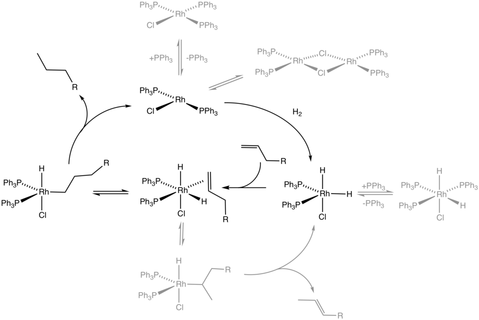 Historically, Wilkinson's catalyst has been a paradigm in catalytic studies leading to several advances in the field such as the implementation of some of the first heteronuclear magnetic resonance studies for its structural elucidation in solution (31P),[3] parahydrogen-induced polarization spectroscopy to determine the nature of transient reactive species,[4] or one of the first detailed kinetic investigation by Halpern to elucidate the mechanism.[5] Furthermore, the catalytic and organometallic studies on Wilkinson's catalyst also played a significant role on the subsequent development of cationic Rh- and Ru-based asymmetric hydrogenation transfer catalysts which set the foundations for modern asymmetric catalysis.[6]