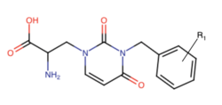 Derivatives of willardiine have also been developed as Kainate receptor antagonists. These were synthesized through the addition of substituents to the N3 position of the 6-membered ring on the natural product willardiine (Figure 7).