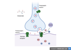 - ^ a b c d e Huettner, James E (2003-08-01). "Kainate receptors and synaptic transmission". Progress in Neurobiology. 70 (5): 387–407. doi:10.1016/S0301-0082(03)00122-9. ISSN 0301-0082. PMID 14511698. S2CID 5108956.