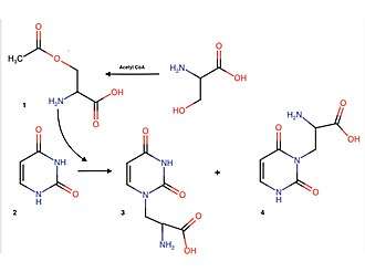 The natural synthesis of willardiine and Isowillardiine from seedlings has been characterized (Figure 5). The synthesis consists of a free uracil ring at nitrogen being substituted for an alanyl side chain, derived from O-acetyl-L-serine.[2]