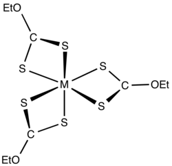 Structure of typical metal tris(ethylxanthate) complex.[11]