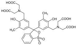 2,2′,2′′,2′′′-{(1,1-Dioxo-2,1λ6-benzoxathiole-3,3(1H)-diyl)bis[(6-hydroxy-5-methyl-3,1-phenylene)methylenenitrilo]}tetraacetic acid | |