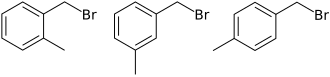 Xylyl-bromide, also known as methylbenzyl bromide or T-stoff ('substance-T'), is any member or a mixture of organic chemical compounds with the molecular formula C6H4(CH3)(CH2Br). The mixture was formerly used as a tear gas and has an odor reminiscent of lilac.[1] All members and the mixture are colourless liquids, although commercial or older samples appear yellowish.