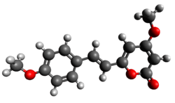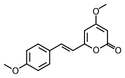 Yangonin is one of the six major kavalactones found in the kava plant.[1] It acts as a selective agonist at the CB1 cannabinoid receptor, inhibits monoamine oxidase (particularly MAO-B), and modulates GABAA receptor activity. Yangonin significantly reduces nociception and inflammatory hyperalgesia via spinal CB1 receptors in rats, highlighting its potential as a promising treatment for pain. It is the strongest COX-II inhibitor among the six major kavalactones. Yangonin also exhibits neuroprotective, antifungal, and antimicrobial properties, though it has shown toxicity to human hepatocytes in vitro.