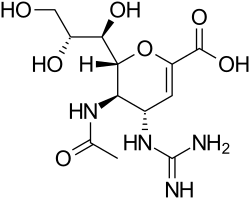 Zanamivir, sold under the brand name Relenza among others, is an anti-viral medication used to treat and prevent influenza caused by influenza A and influenza B viruses. It is a neuraminidase inhibitor and was developed by the Australian biotech firm Biota Holdings. It was licensed to Glaxo Wellcome in 1990 and approved in the US in 1999, only for use as a treatment for influenza. In 2006, it was approved for prevention of influenza A and B.[5] Zanamivir is the first neuraminidase inhibitor commercially developed. It was developed by GlaxoSmithKline.