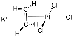 - ^ Jarvis, J. A. J.; Kilbourn, B. T.; Owston, P. G. (1971). "A Re-determination of the Crystal and Molecular Structure of Zeise's salt, KPtCl3.C2H4.H2O". Acta Crystallogr. B. 27 (2): 366–372. Bibcode:1971AcCrB..27..366J. doi:10.1107/S0567740871002231.