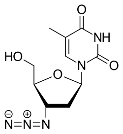 - ^ Dyer I, Low JN, Tollin P, Wilson HR, Howie RA (April 1988). "Structure of 3'-azido-3'-deoxythymidine, AZT". Acta Crystallogr C. 44 (4): 767–9. Bibcode:1988AcCrC..44..767D. doi:10.1107/S0108270188000368. PMID 3271074.