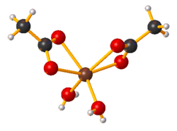 In the dihydrate, zinc is octahedral, wherein both acetate groups are bidentate.[13][14]