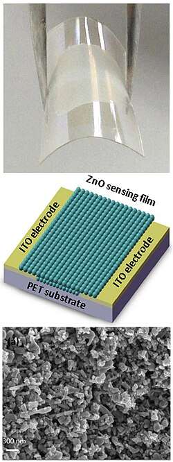 125. ^ Zheng ZQ, Yao JD, Wang B, Yang GW (June 2015). "Light-controlling, flexible and transparent ethanol gas sensor based on ZnO nanoparticles for wearable devices". Scientific Reports. 5 11070. Bibcode:2015NatSR...511070Z. doi:10.1038/srep11070. PMC 4468465. PMID 26076705.