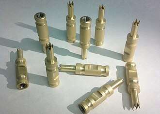 Zirconium nitride is a hard ceramic material similar to titanium nitride and is a cement-like refractory material. Thus it is used in cermets and laboratory crucibles. When applied using the physical vapor deposition coating process it is commonly used for coating medical devices,[5] industrial parts (notably drill bits), automotive and aerospace components and other parts subject to high wear and corrosive environments.