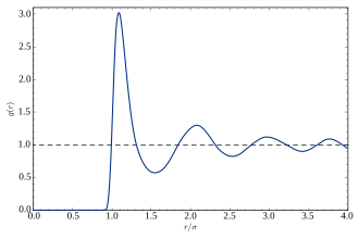 An equivalent representation of these correlations is the radial distribution function , which is related to the Fourier transform of .[30] It represents a spatial average of a temporal snapshot of pair correlations in the liquid.