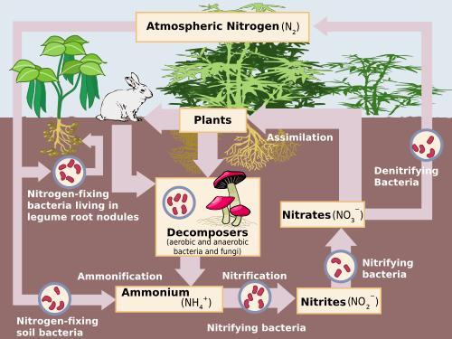 The relative abundance of 14N and 15N is practically constant in the atmosphere but can vary elsewhere, due to natural isotopic fractionation from biological redox reactions and the evaporation of natural ammonia or nitric acid.[1] Biologically mediated reactions (e.g., assimilation, nitrification, and denitrification) strongly control nitrogen dynamics in the soil. These reactions typically result in 15N enrichment of the substrate and depletion of the product.[36]