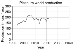 - ^ Loferski, P. J. (October 2011). "2010 Minerals Yearbook; Platinum-group metals" (PDF). USGS Mineral Resources Program. Archived (PDF) from the original on 8 July 2012. Retrieved 17 July 2012.