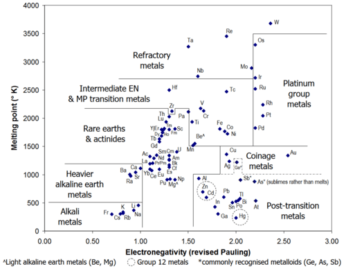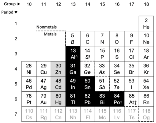 ^ Aluminium is occasionally not counted as a post-transition metal given its absence of d electrons